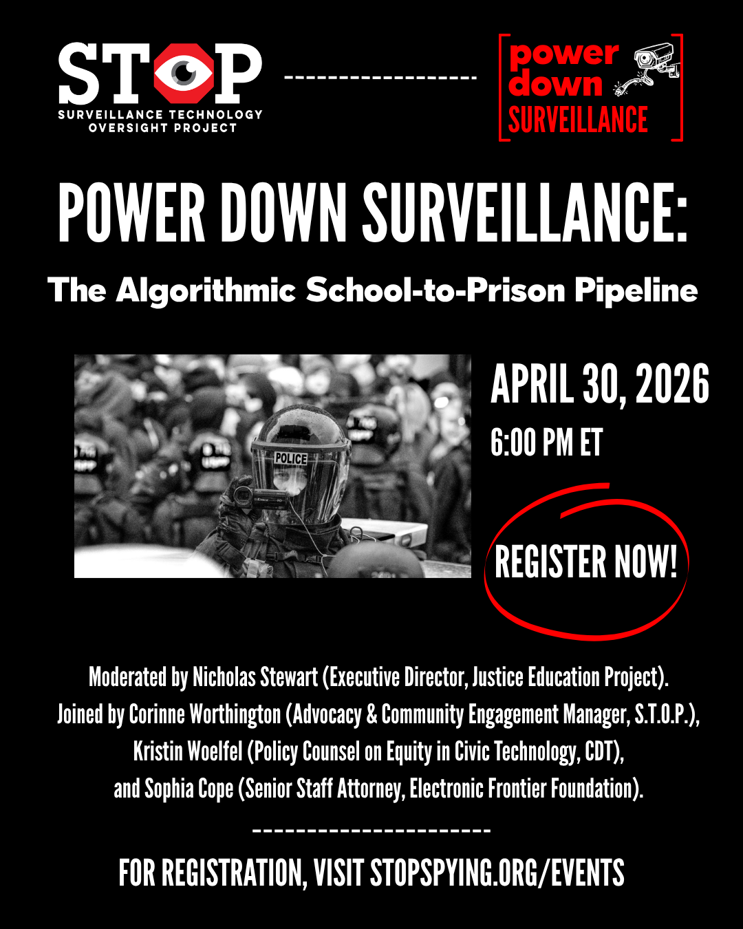 At this pivotal moment in our country, it’s easy to feel overwhelmed and powerless—but there are still many ways to fight back. S.T.O.P.’s Power Down Surveillance event series is here to empower YOU in the era of mass surveillance. Stay tuned for more events from S.T.O.P.!