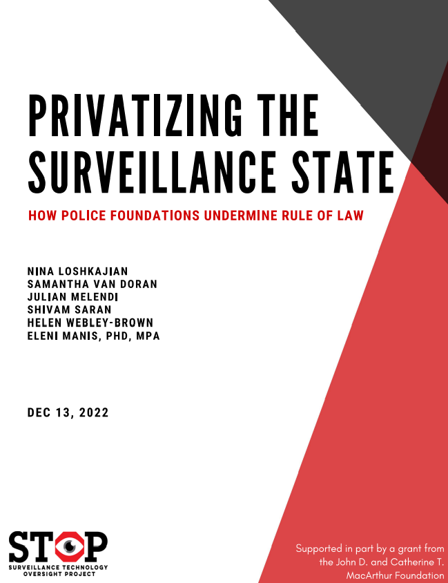 Foundations invest in dangerous surveillance tools like predictive policing software, digital surveillance platforms, cellphone hacking devices, and robotic spy dogs.