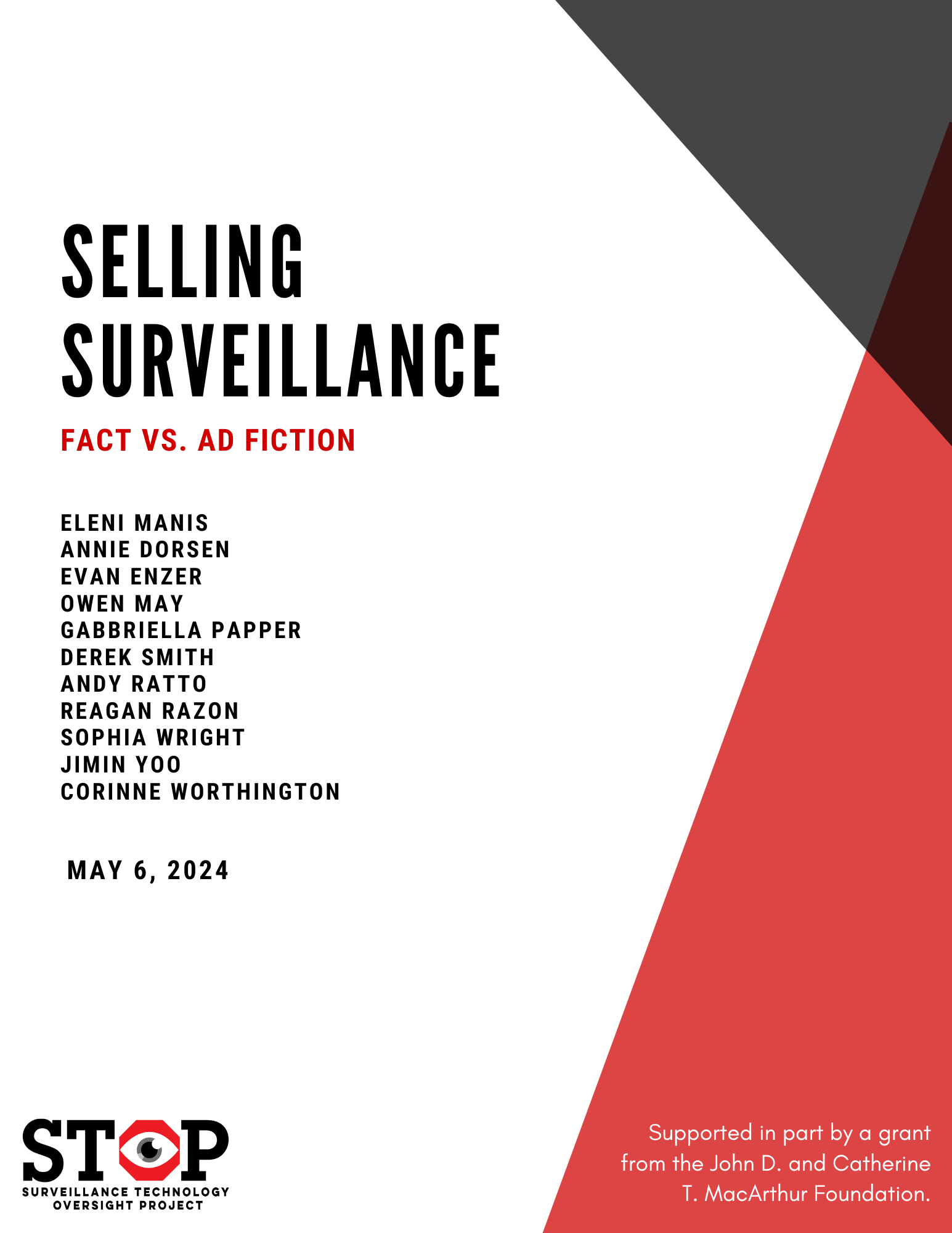 We extend a special thanks to our external reviewers: Dave Maass, Director of Investigations, Electronic Frontier Foundation; and Conor Healy, Director of Government Research, IPVM.